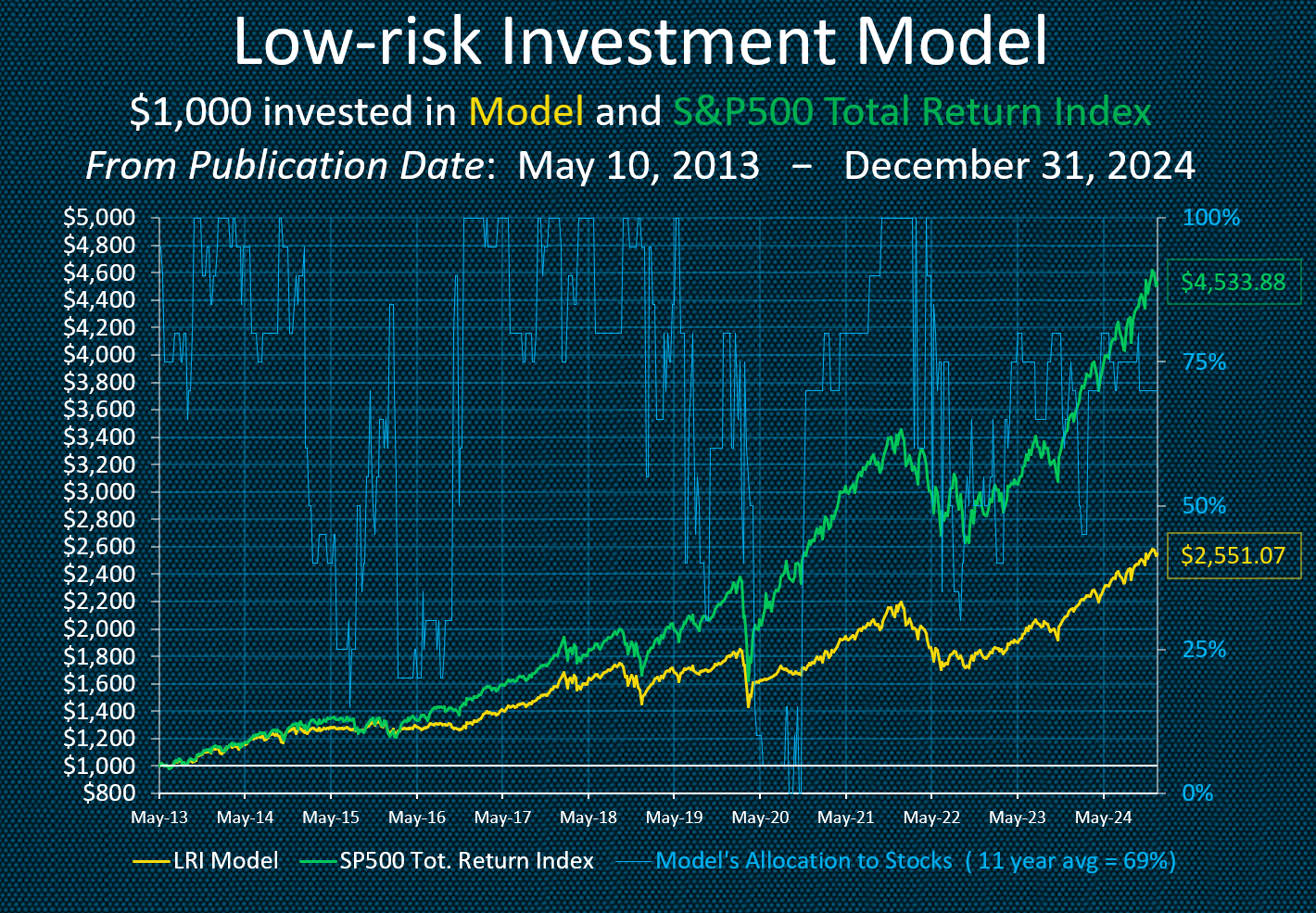 Over these past three decades, the Model has averaged just 68% in stocks while producing average annual (compounded) returns of nearly 10.0%.